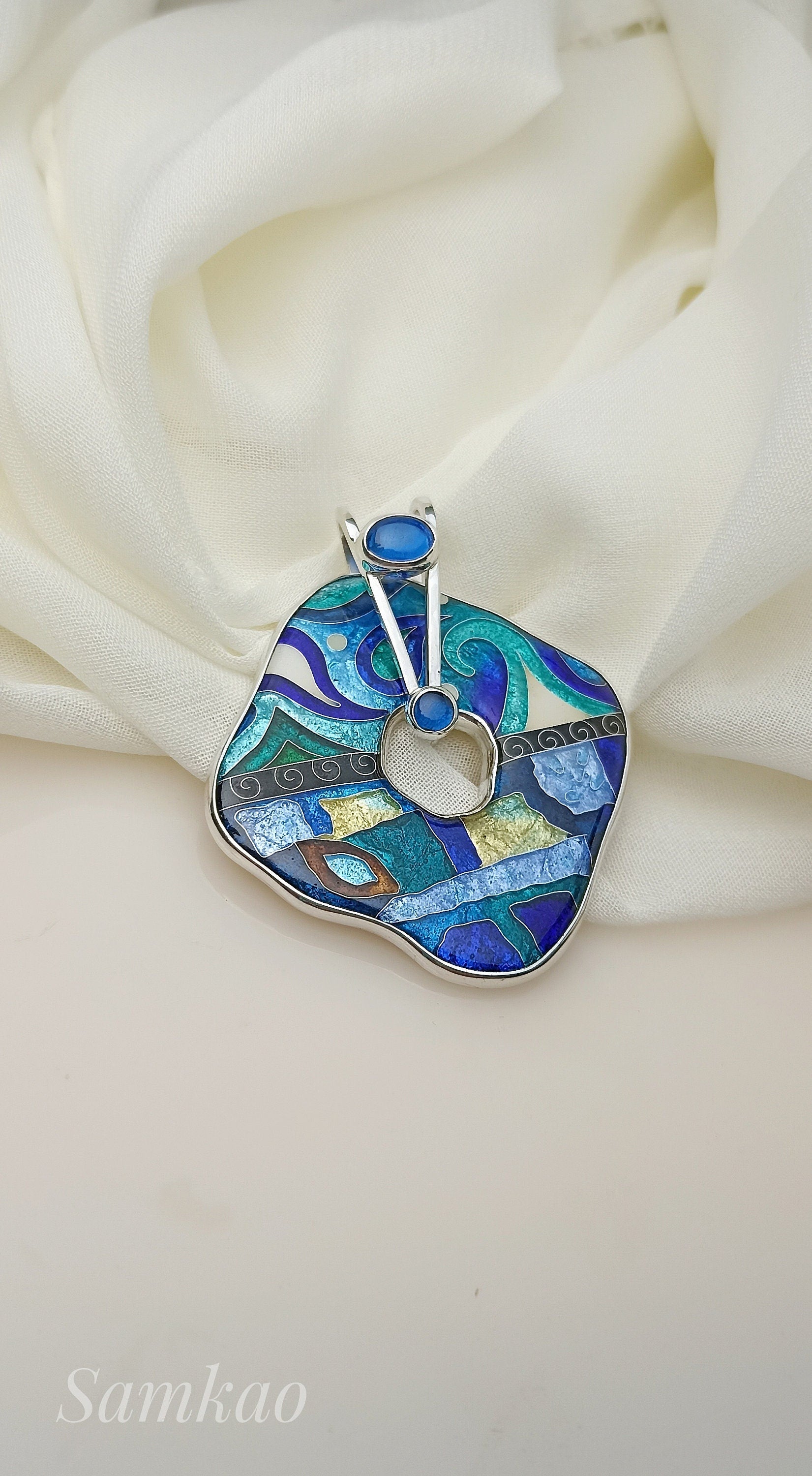 Cloisonné Enamel Pendant – Handmade Fine Silver, Artistic Design