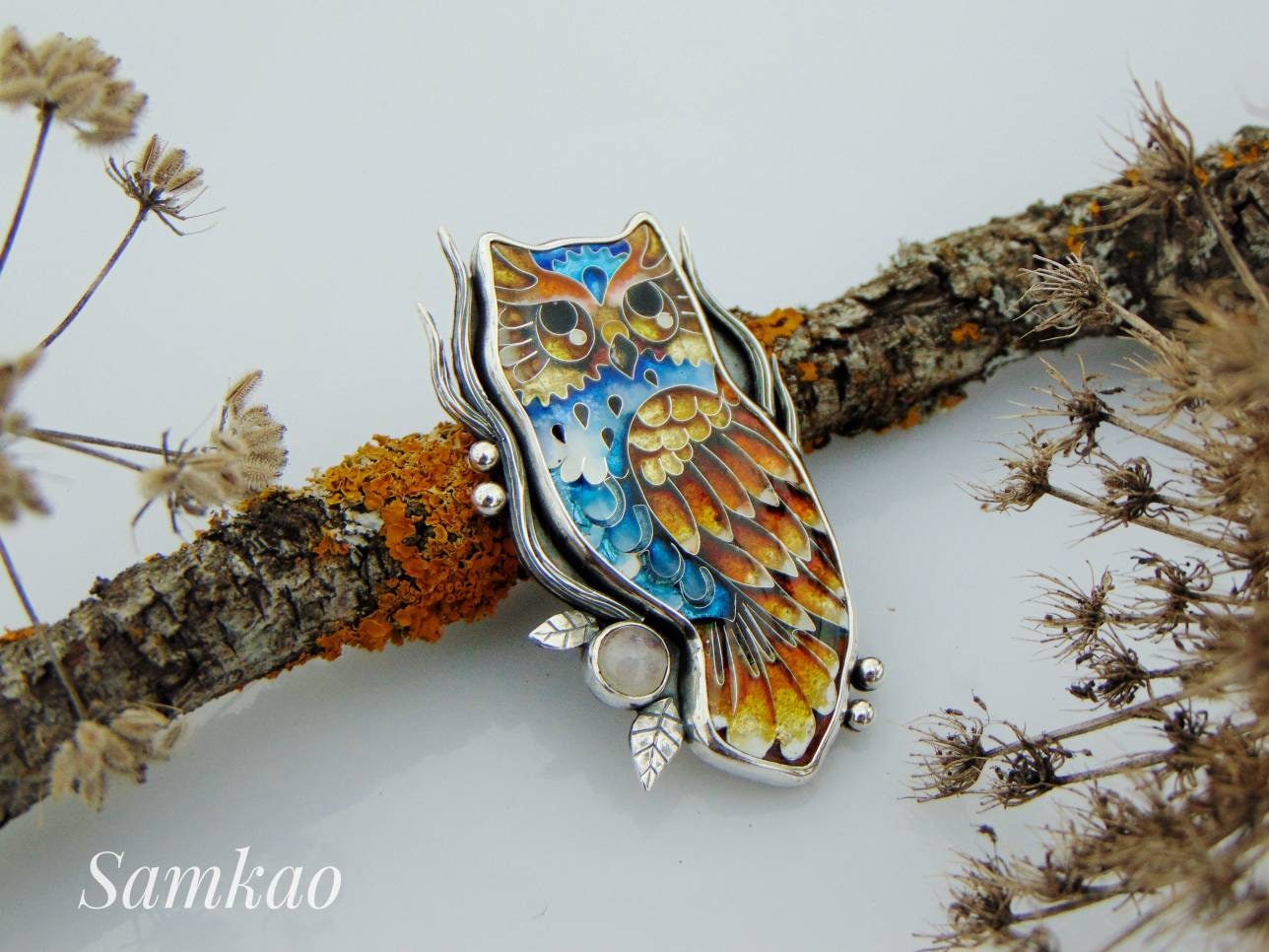 This handmade owl pendant is crafted using the Georgian cloisonné enamel technique, combining centuries-old artistry with modern elegance. Every detail is shaped by hand and filled with vitreous enamel to create a unique, one-of-a-kind design.